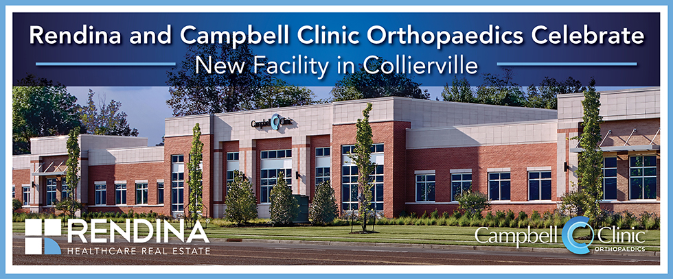 Rendina Healthcare Real Estate announced the completion of its second project with Campbell Clinic Orthopaedics, a new state-of-the-art orthopaedic facility located in Collierville, Tennessee. The 30,000 square foot clinic officially opened in early January and reflects the continued collaboration between the two organizations to expand access to high quality orthopaedic care in patient focused environments.